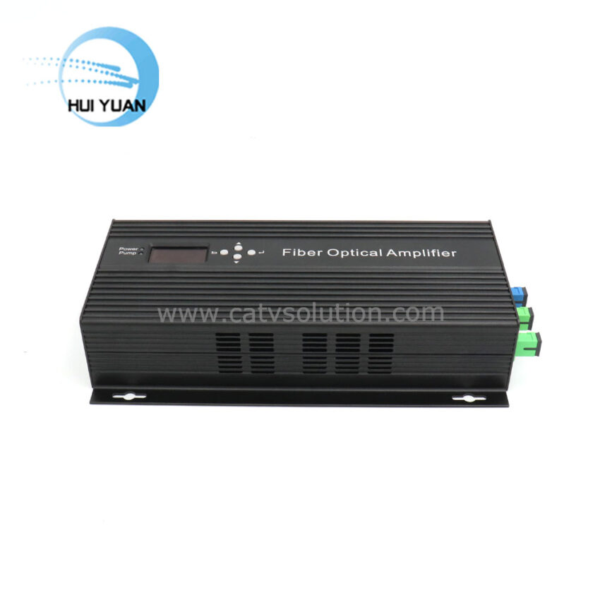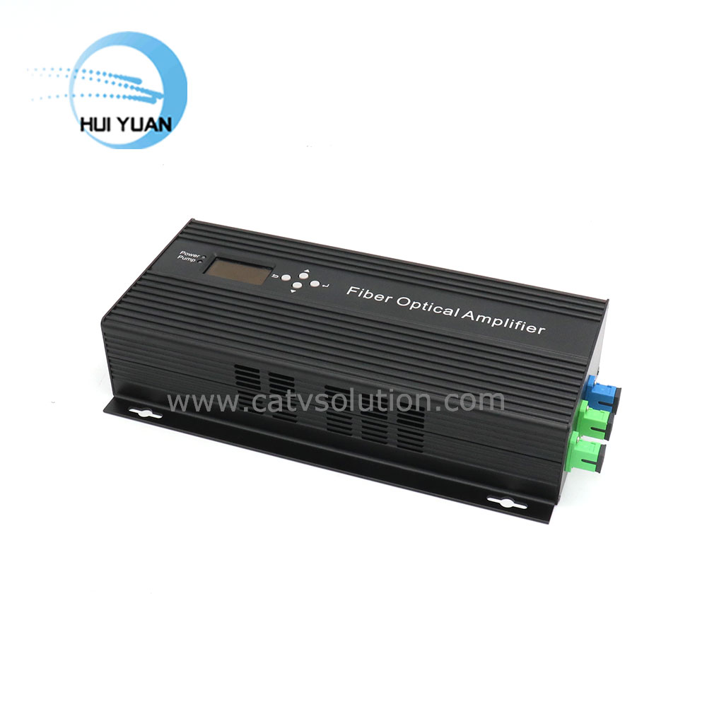 The product is high output power C-Band Er co-doped or Er-Yb co-doped double cladding optical fiber amplifier. The key components of the product are high reliability multimode PUMP laser and the double cladding optical fiber. A proprietary ATC (Automatic Temperature Control) and APC (Automatic Power Control) circuit insures the high stability and reliability output power, the unique optical circuit design ensures the excellent optical performance. The high stability and high precision MPU system to ensure the control, adjustment and display are intelligent and easy.